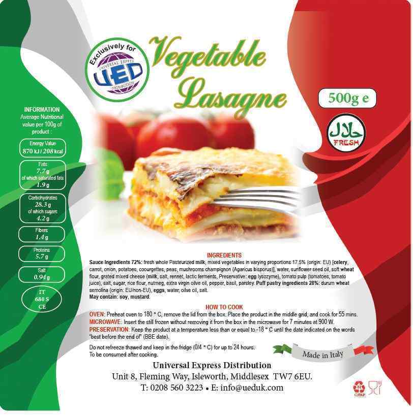 Vegetable Lasagne (8 x 500 G)